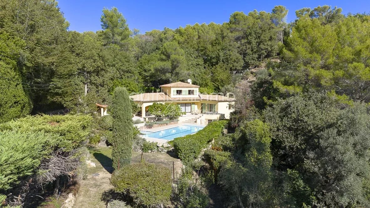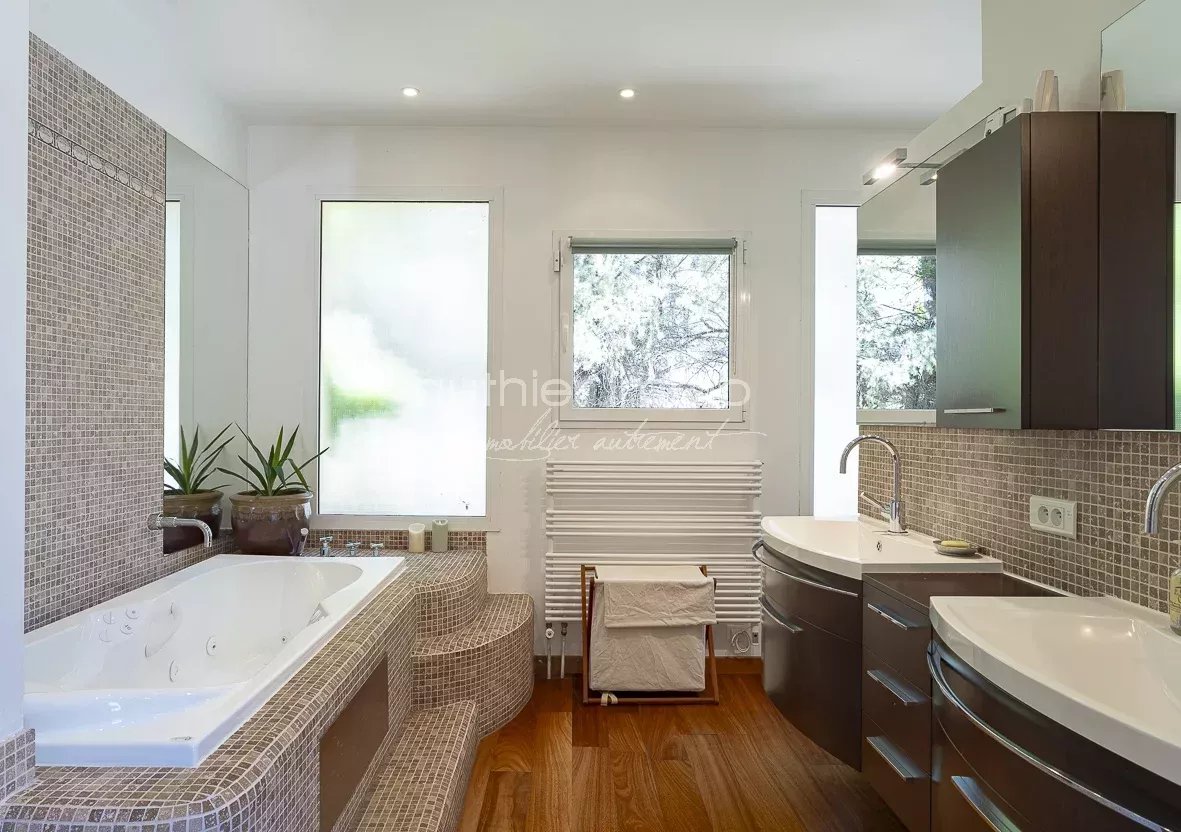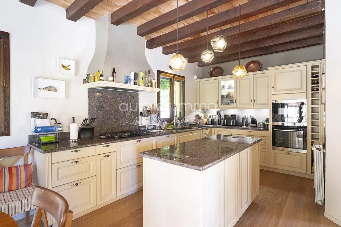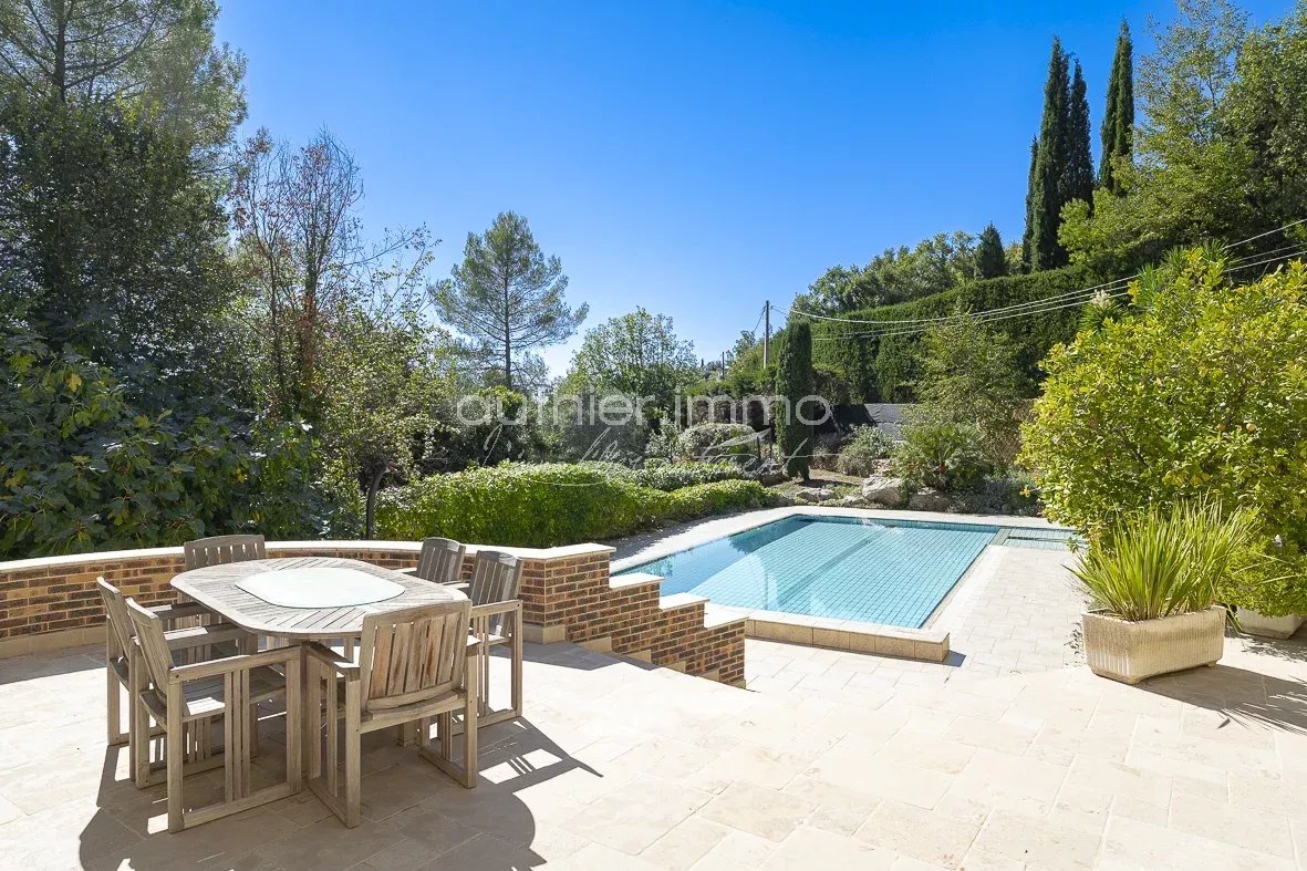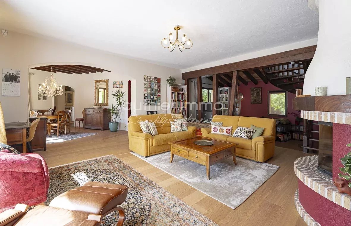 Nestled in a lush green setting in Le Rouret, this magnificent 216 m² Provençal villa is a true haven of peace. It captivates with its authentic character and high-end amenities.